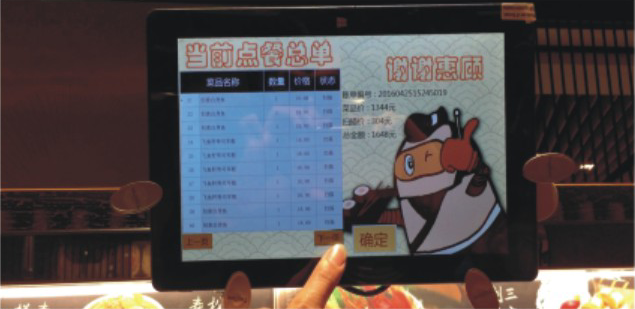 智能送餐系統(tǒng):客人送出點餐后,廚房端會搭配好客人所點的餐食并依序透過自動送餐系統(tǒng)輸送至客人桌前,客人取下餐點后,送餐車會自動歸回廚房,省去人力送餐的成本,并可降低意外發(fā)生率。此自動送餐系統(tǒng)亦可運送像湯鍋或大拼盤組合那樣重的餐點,且送餐速度穩(wěn)定,不會有潑灑或傾倒的情形發(fā)生。