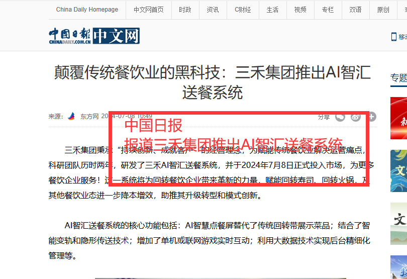 三禾集團(tuán)AI智匯送餐系統(tǒng)發(fā)布,引爆媒體爭相報道,掀起智能餐飲革新浪潮